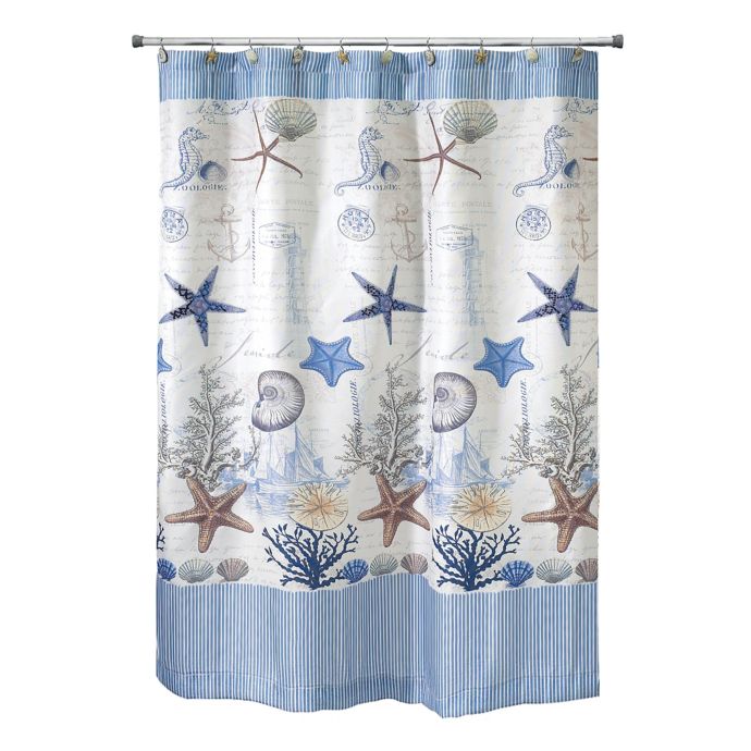 Live better. / Avanti Linens Shower Curtains. left hand navigationSkip to Search Results. Avanti Life Preservers Nautical Fabric Shower Curtain Navy White Red Anchor New. This natty print mixes stripes with seashells, starfish, corals and a background of sailing ships, lighthouses and postcards.